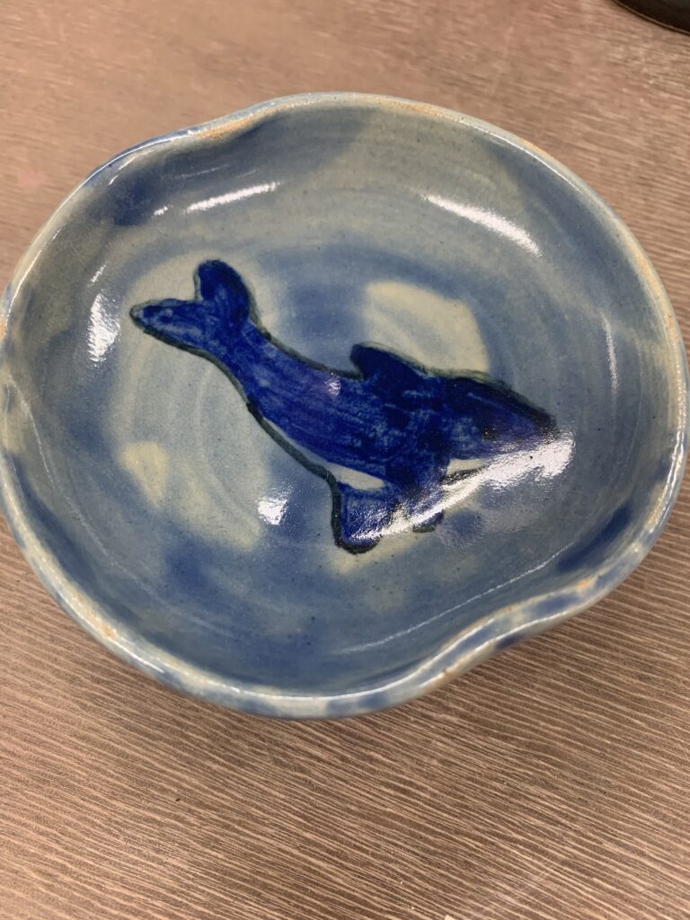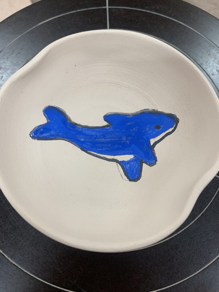 小皿の中心にいるかの絵を書きました。